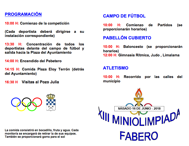 XIII MINIOLIMPIADA FABERO SÁBADO 16 DE JUNIO DE 2018