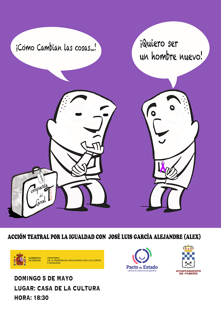Teatro por la igual con José Luis García Alejandre (Alex) Domingo 5 de Mayo / Casa de La Cultura de Fabero / 18:30 h Financiado por el Ministerio de la Presidencia, Relaciones con las Cortes e Igualdad a través de la Secretaría de estado de Igualdad.