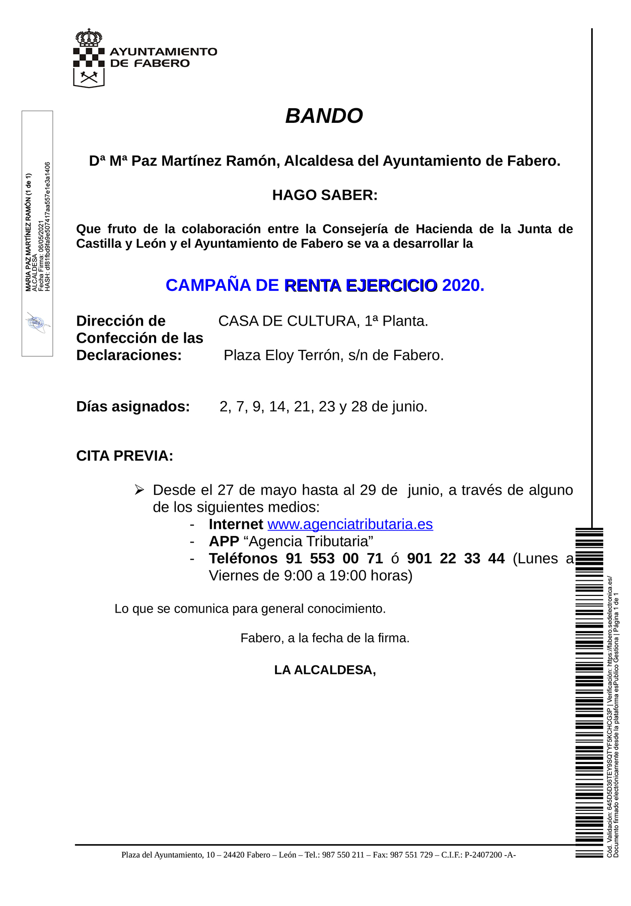 BANDO INFORMATIVO / Campaña de Renta Ejercicio 2020